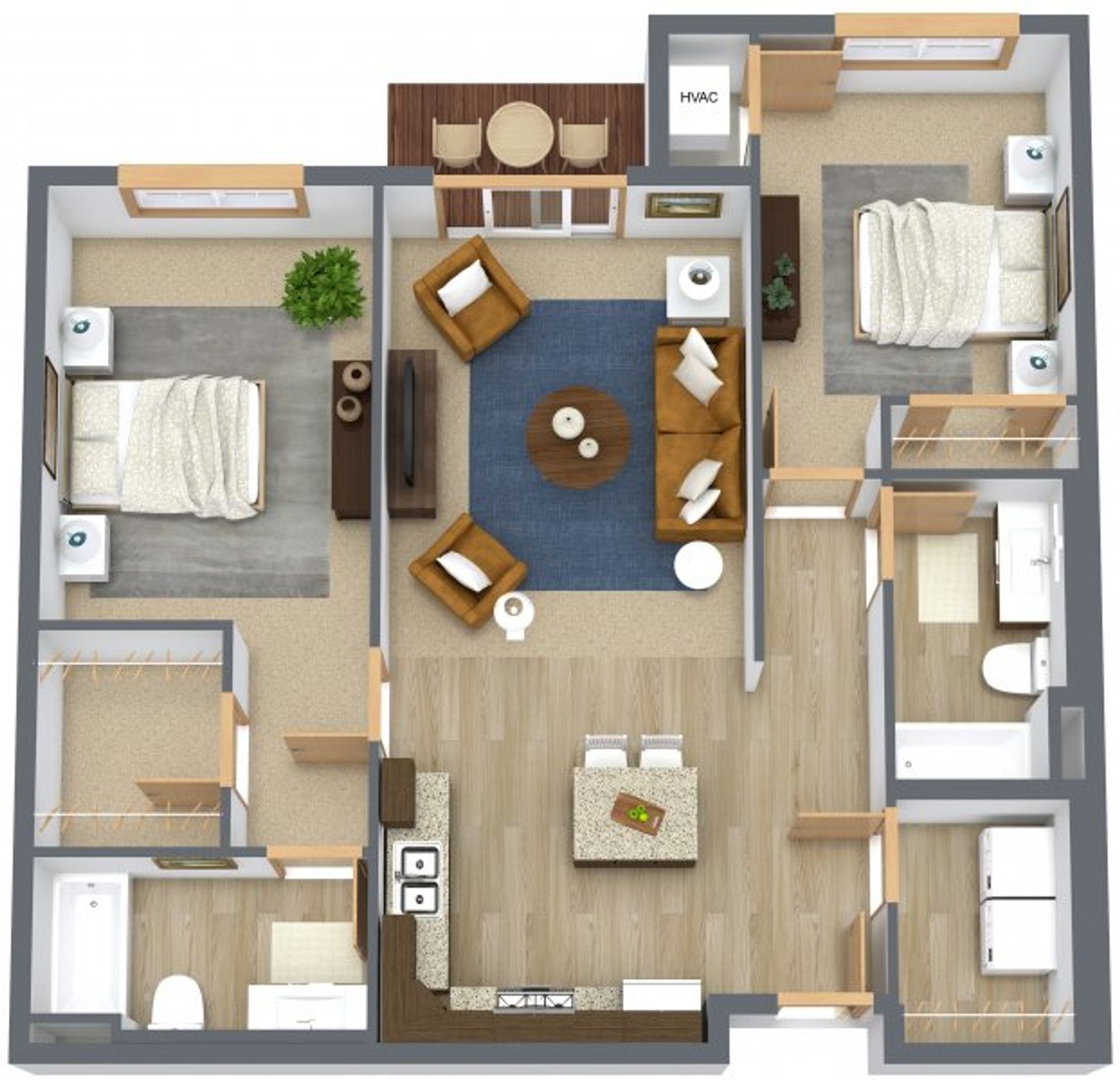 Our apartments give you an open, comfortable layout with stainless steel appliances, your own heating and cooling, and the ease of an in-unit washer and dryer. Hang out in the clubhouse with its golf simulator and coffee bar, kick back by the outdoor pool, or catch a game on the big TV in the community room. You’ll also enjoy a modern fitness space, grilling stations, a dog park and wash station, a package concierge, and the option for underground parking.
