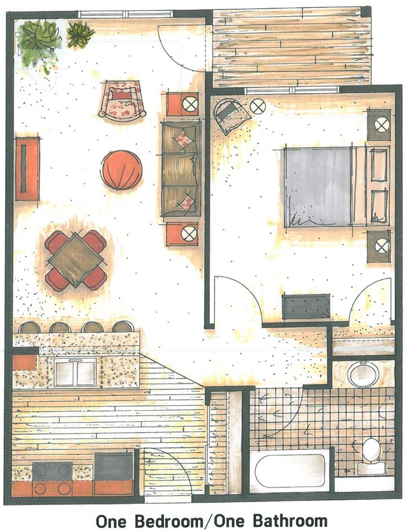 Located in a scenic setting, 1 bedroom/1 bath apartment with open concept living area, hot water baseboard heat, individual air conditioning in each unit, and covered patio or balcony. Community rooms with public restrooms, library/game rooms, and well-equipped fitness rooms.