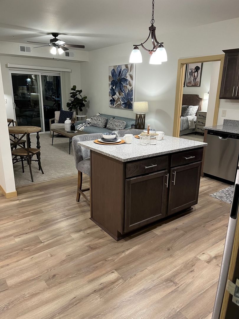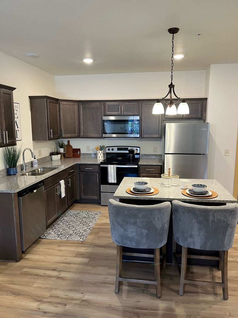 Conveniently located in Albertville near I-94. 2 bedroom/2 bath apartment with open concept living area, individual heating/cooling, in-unit washer/dryer, and covered balcony. Rent includes 1 parking stall in the main level parking garage. The clubhouse building houses the Site Manager’s office, community room, well-equipped fitness room, restrooms, and an attached outdoor pool with showers.