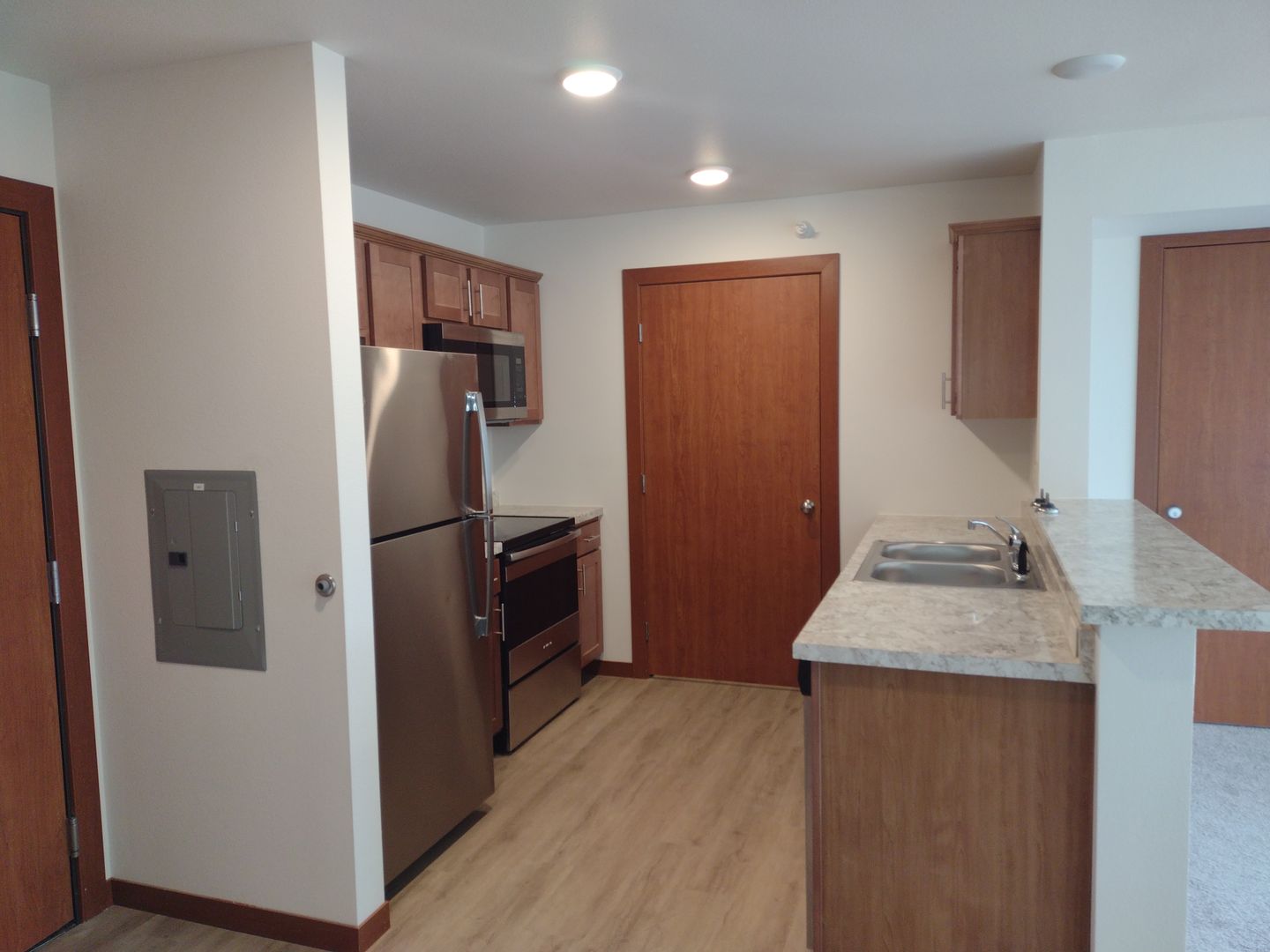 Located in the scenic riverside community of Northfield, MN. 1 bedroom/1 bath with pantry apartment with open concept living area, individual heating/cooling system, and covered patio or balcony.