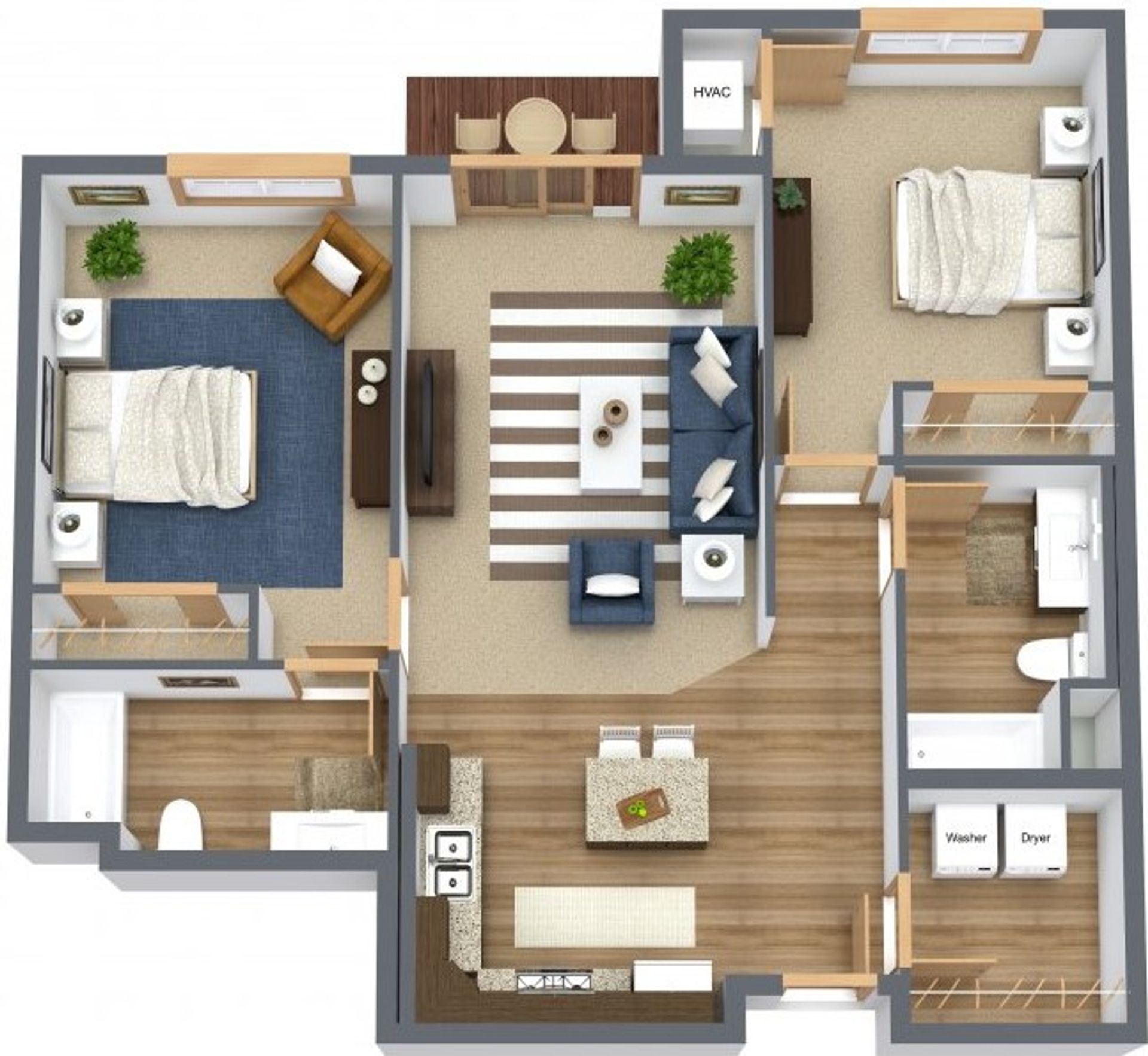 Our apartments give you an open, comfortable layout with stainless steel appliances, your own heating and cooling, and the ease of an in-unit washer and dryer. Hang out in the clubhouse with its golf simulator and coffee bar, kick back by the outdoor pool, or catch a game on the big TV in the community room. You’ll also enjoy a modern fitness space, grilling stations, a dog park and wash station, a package concierge, and the option for underground parking.