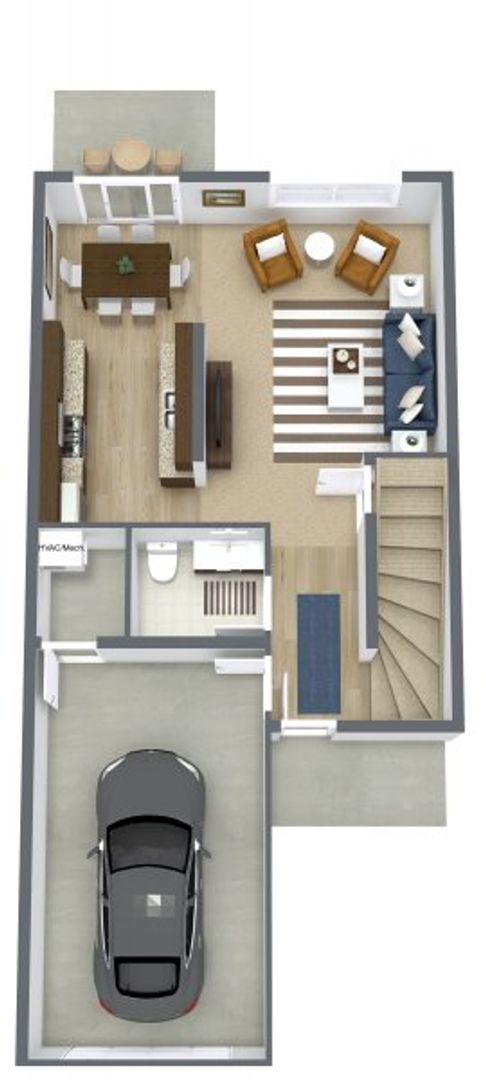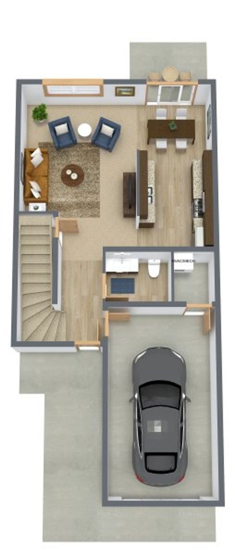3 bedroom 2-1/2 bath two-level townhome with open concept living area, individual heating/cooling system, in-unit laundry, patio, and attached single car garage with overhead door opener.