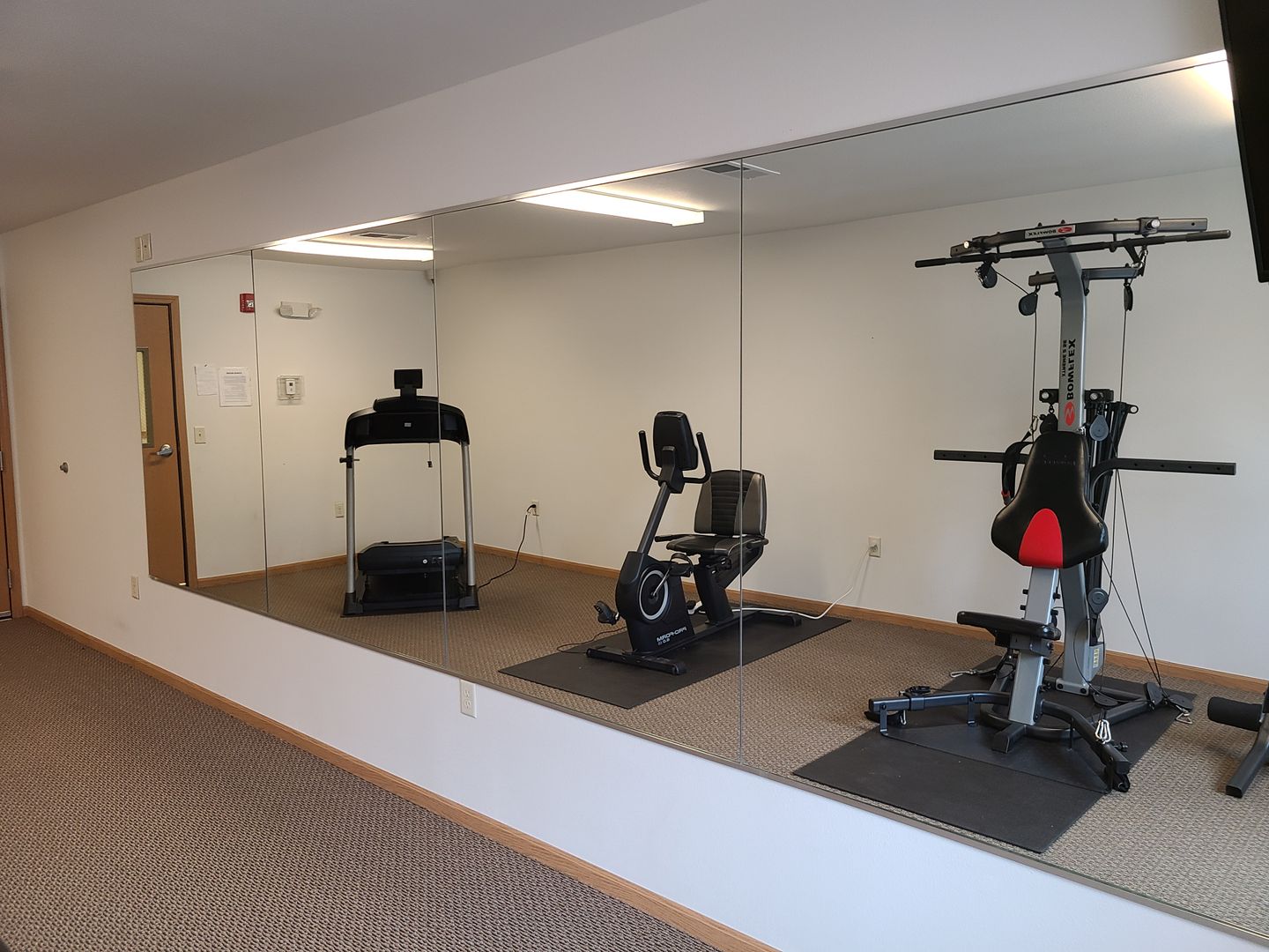 2 bedroom/1 bath apartment with open concept living area, hot water baseboard heat, individual air conditioning in each unit, and covered patio or balcony. Community rooms with public restrooms, library/game rooms, and well-equipped fitness rooms.