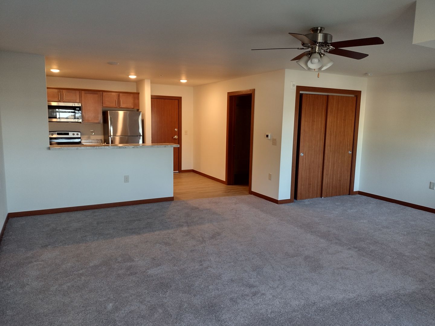 Located in the scenic riverside community of Northfield, MN. Loft apartment with open concept living area, individual heating/cooling system, and covered patio or balcony.