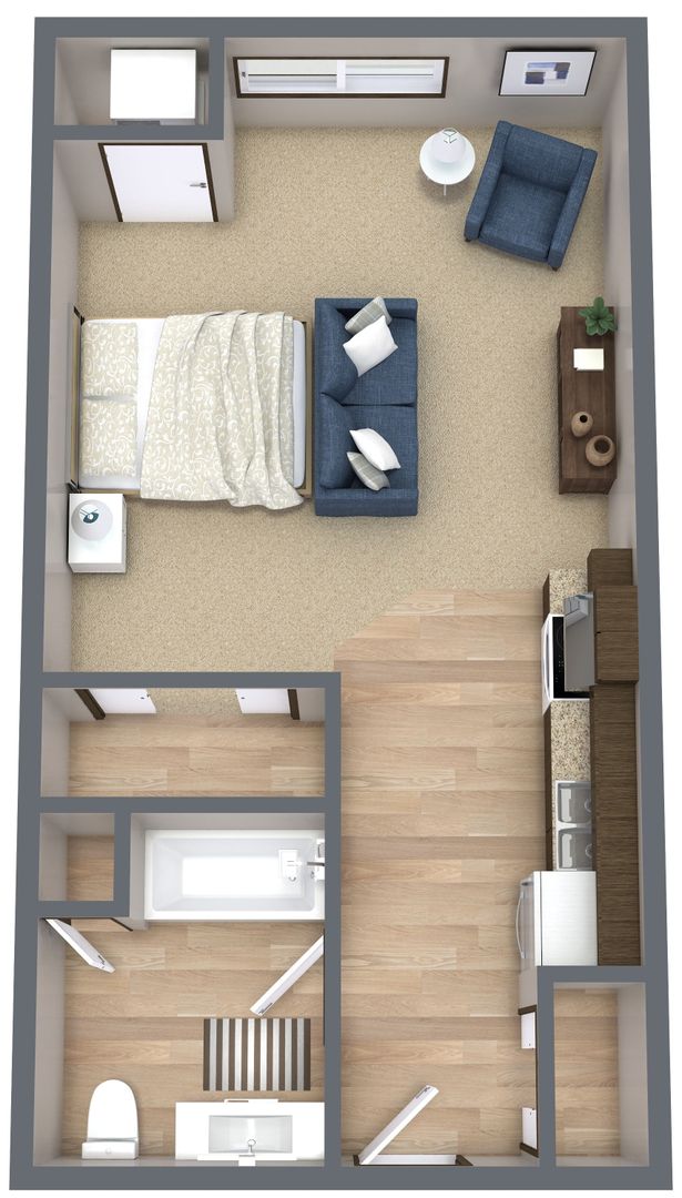 Conveniently located near the Big Lake Station/Northstar Line and just moments from outdoor recreational activities at Big Lake and Lakeside Park. Studio apartment with fully-equipped kitchen and individual heating and cooling system.