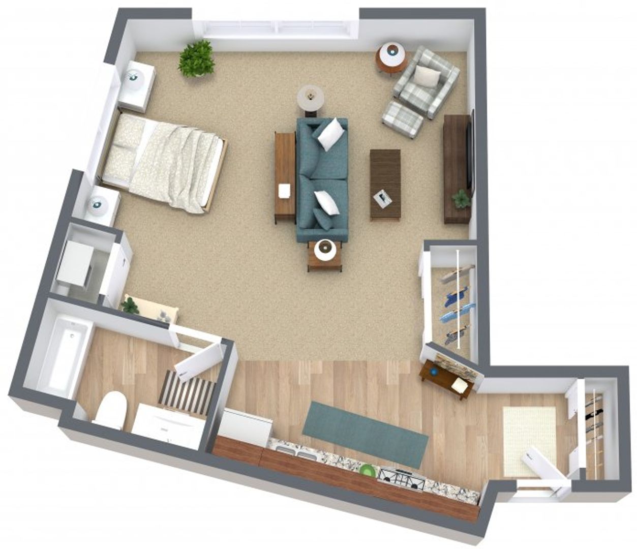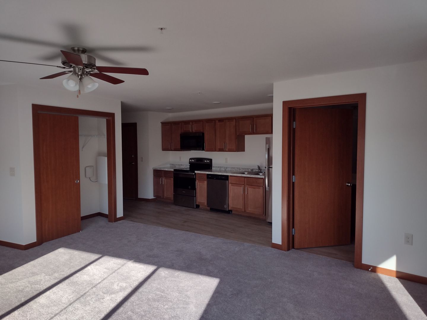Located in the scenic riverside community of Northfield, MN. Loft apartment with open concept living area, individual heating/cooling system, and covered patio or balcony.
